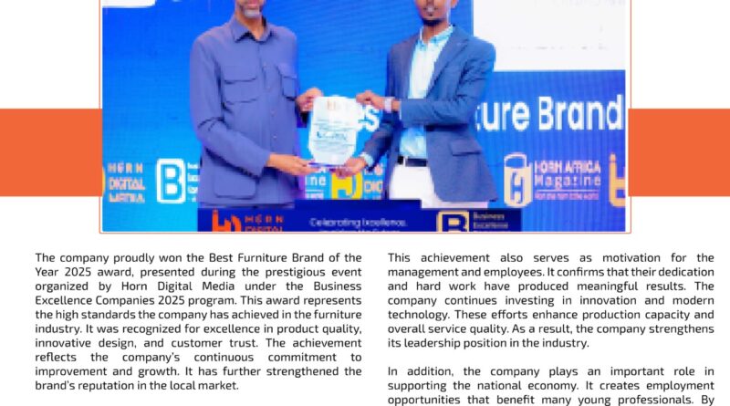 The company proudly won the Best Furniture Brand of the Year 2025 award, presented during the prestigious event organized by