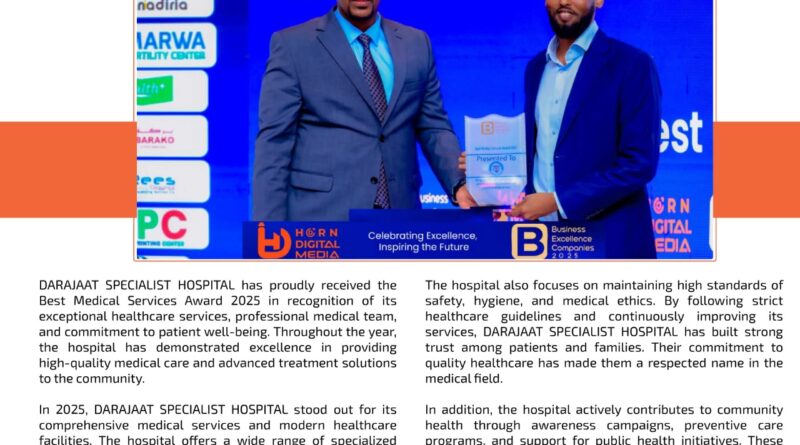 DARAJAAT SPECIALIST HOSPITAL has proudly received the Best Medical Services Award 2025 in recognition of its exceptional healthcare services, professional