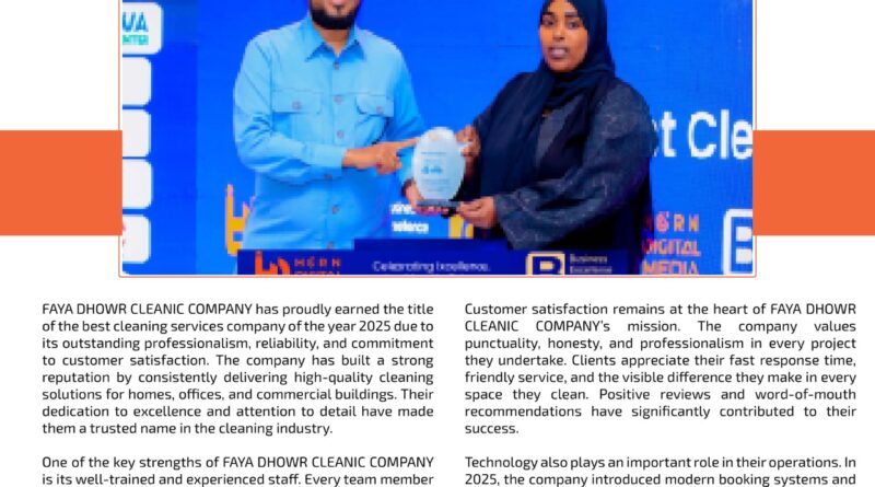 FAYA DHOWR CLEANIC COMPANY has proudly earned the title of the best cleaning services company of the year 2025 due