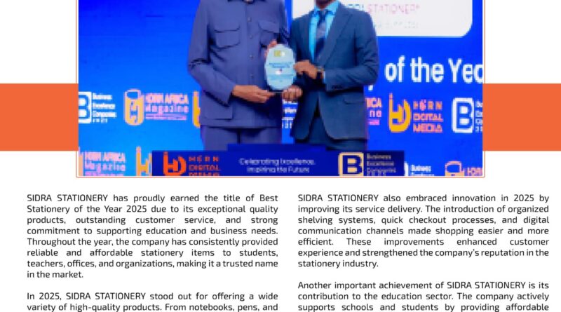 SIDRA STATIONERY has proudly earned the title of Best Stationery of the Year 2025 due to its exceptional quality products,