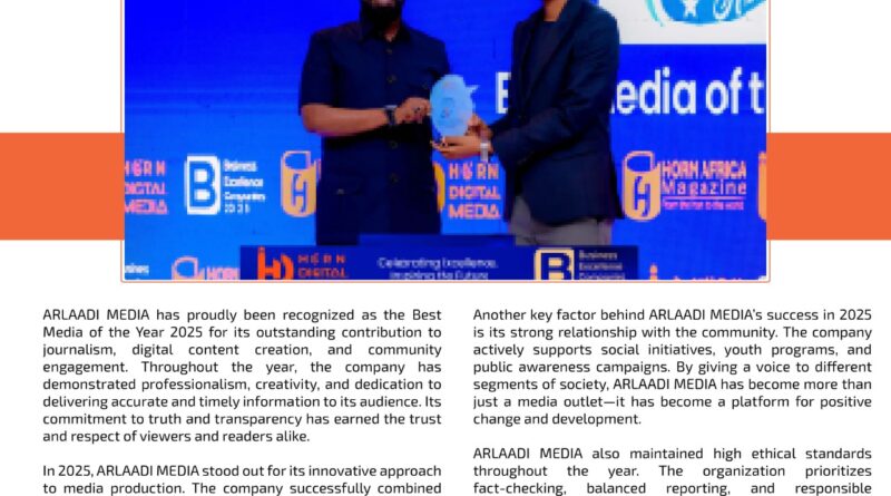 ARLAADI MEDIA has proudly been recognized as the Best Media of the Year 2025 for its outstanding contribution to journalism,