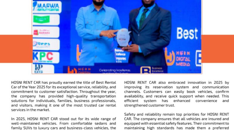 HOSNI RENT CAR has proudly earned the title of Best Rental Car of the Year 2025 for its exceptional service,